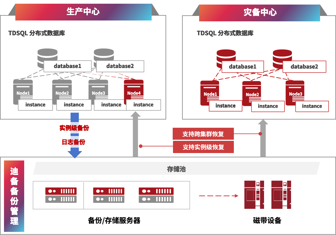 鼎甲迪備 TDSQL 分布式數據庫保護方案還提供異地容災解決方案,通過遠程復制功能將備份集復制一份或多份到異地災備中心,用戶可從異地備份中直接恢復數據,確保業務連續性和穩定性。