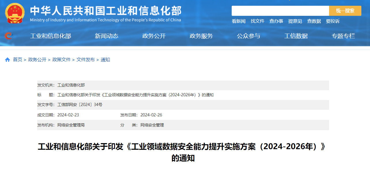 政策解讀 | 工信部印發(fā)《工業(yè)領域數(shù)據(jù)安全能力提升實施方案(2024-2026年)》