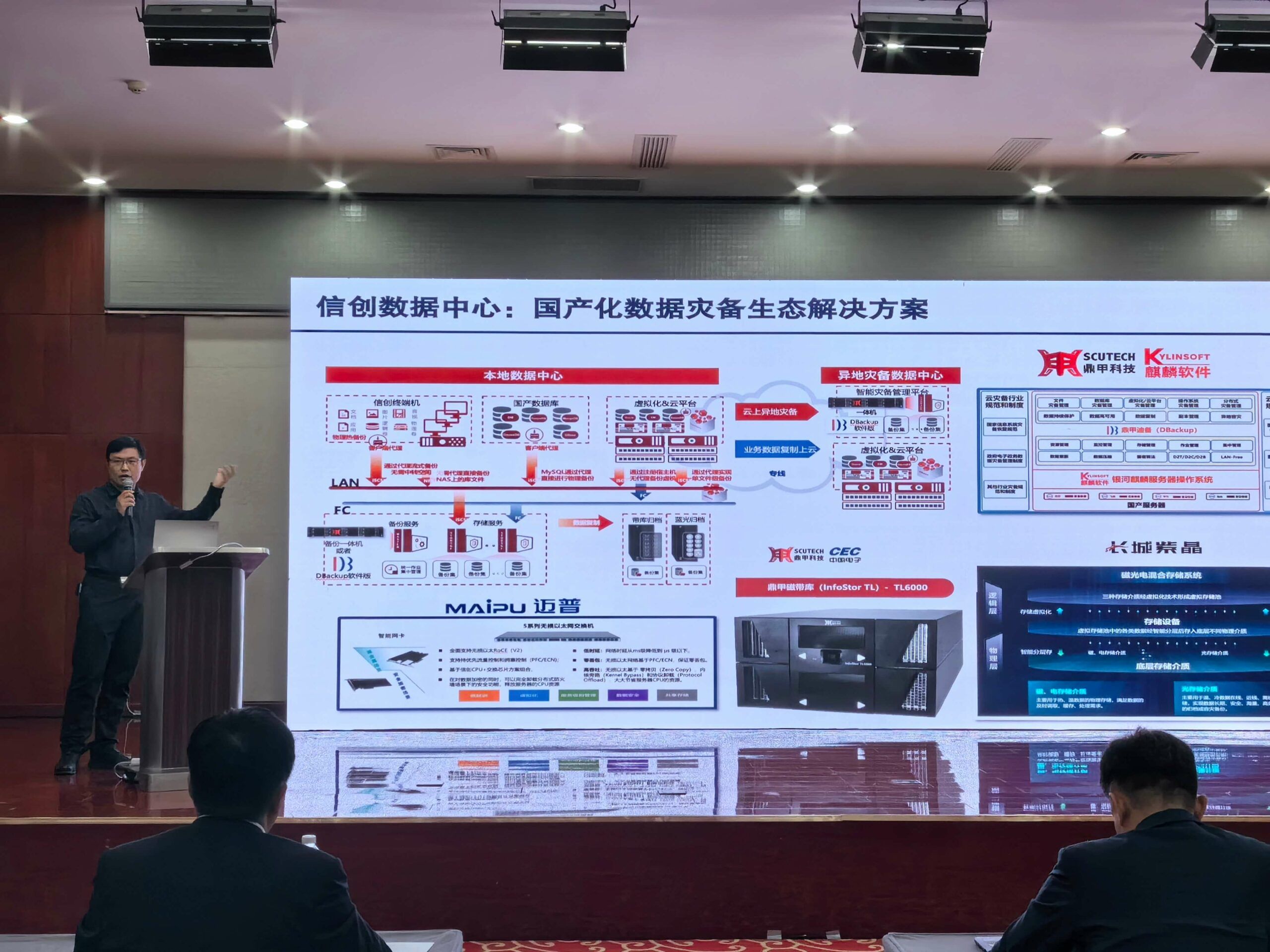 多家優秀企業代表分享了在行業應用協同創新中的最新成果。鼎甲北區技術總監姜思亮帶來了《信創成功方案和實施案例》主題演講。中國電子致力于聯合生態優勢力量,聚力打造產品能力融合解決方案。其中,鼎甲作為中國電子旗下唯一的數據保護企業,PKS 體系的重要成員,其國產數據保護平臺融合了備份、容災、CDM、重復數據刪除、磁帶歸檔等功能模塊,兼容適配多種操作系統、海量文件、數據庫、虛擬化平臺、云計算平臺、大數據應用、云原生應用等各類資源,為用戶提供成熟穩定、性能優越、安全合規的整體解決方案。