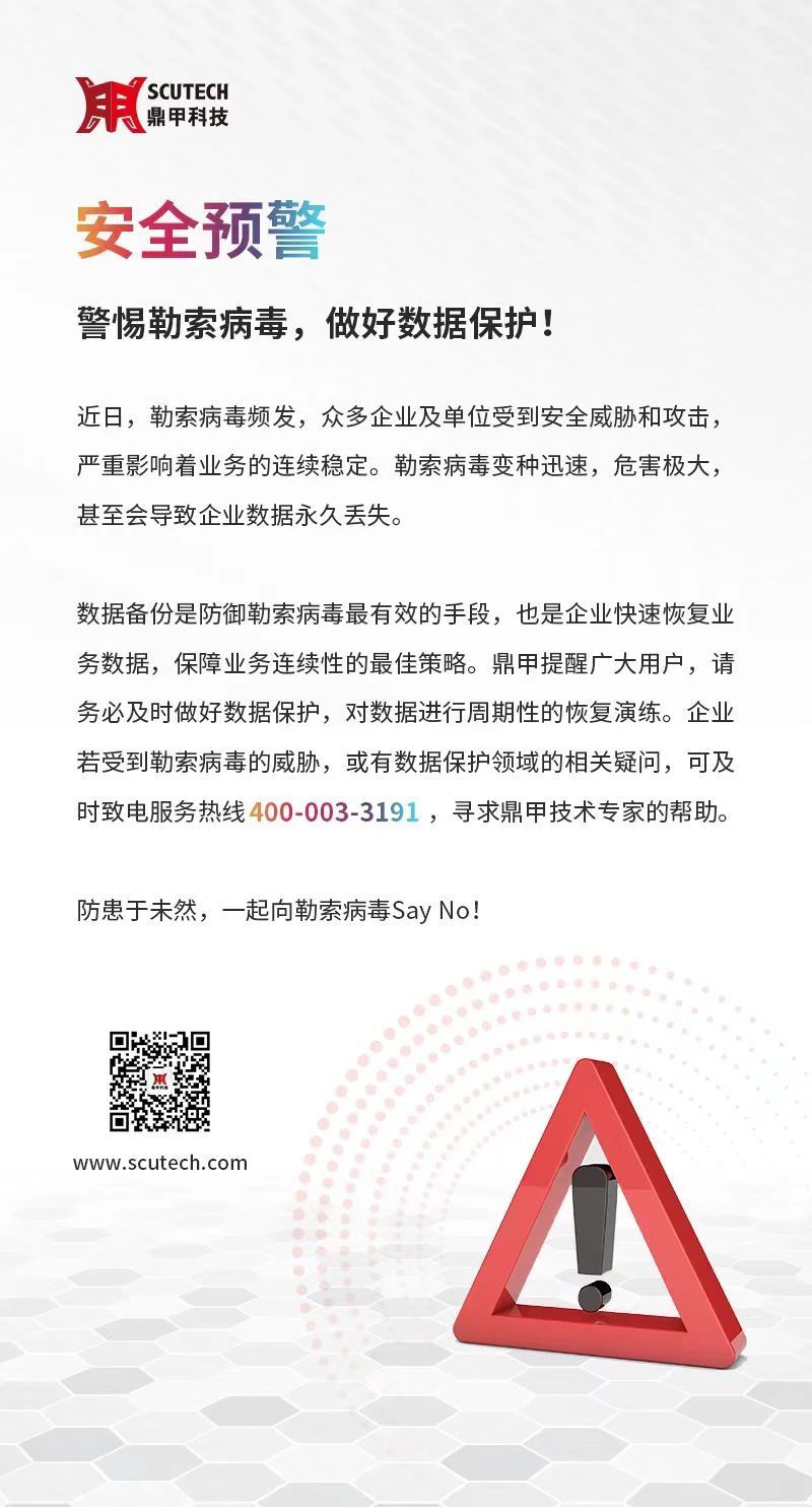 近年來,勒索攻擊頻繁得手,造成的影響越來越大。面對日益猖獗的勒索病毒威脅,如何有效防范與應對?鼎甲專家強調(diào),數(shù)據(jù)備份仍然是抵御勒索病毒等網(wǎng)絡威脅最重要、最直接、最有效的手段,構建堅實的數(shù)據(jù)備份體系勢在必行。
