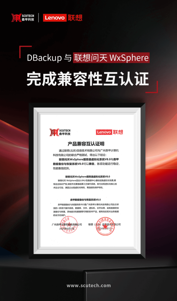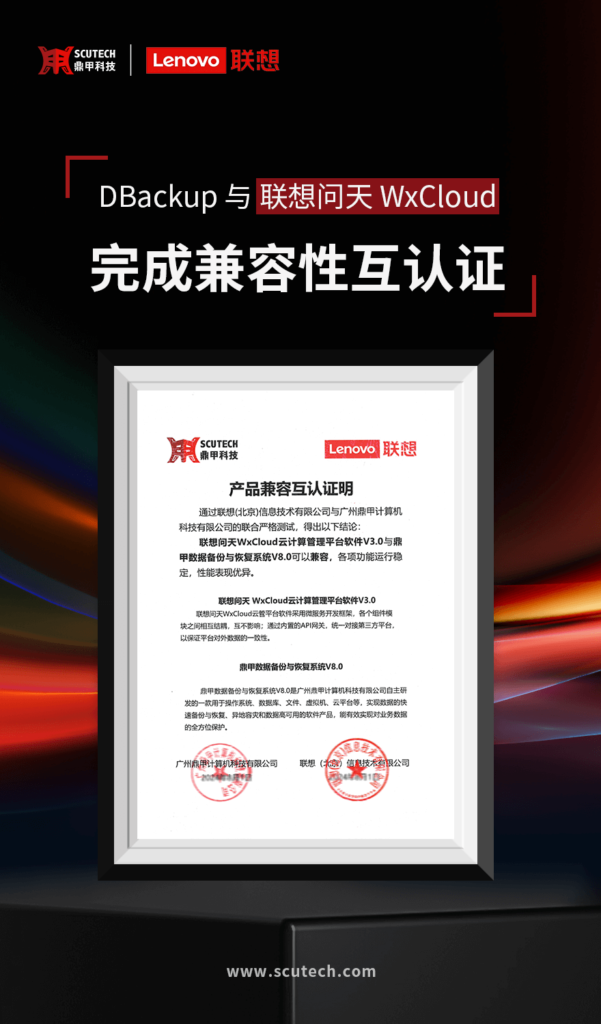 鼎甲 DBackup 與聯(lián)想問天 WX 系列 SDI 產(chǎn)品完成兼容認證!