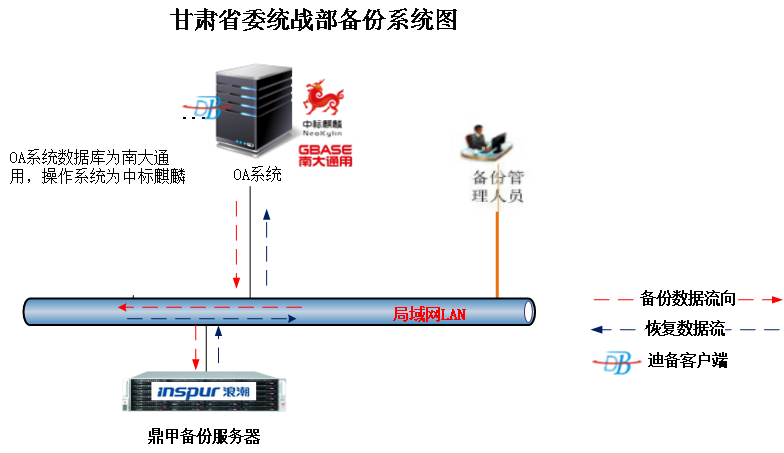 在甘肅省委統(tǒng)戰(zhàn)部OA系統(tǒng)上部署鼎甲迪備備份容災(zāi)軟件客戶端,備份服務(wù)器及存儲介質(zhì)由一臺浪潮服務(wù)器組成,針對國產(chǎn)中標(biāo)麒麟操作系統(tǒng)、國產(chǎn)數(shù)據(jù)庫Gbase(南大通用)數(shù)據(jù)庫分別進(jìn)行全量備份、增量備份。實現(xiàn)對于OA系統(tǒng)完整的保護(hù)。